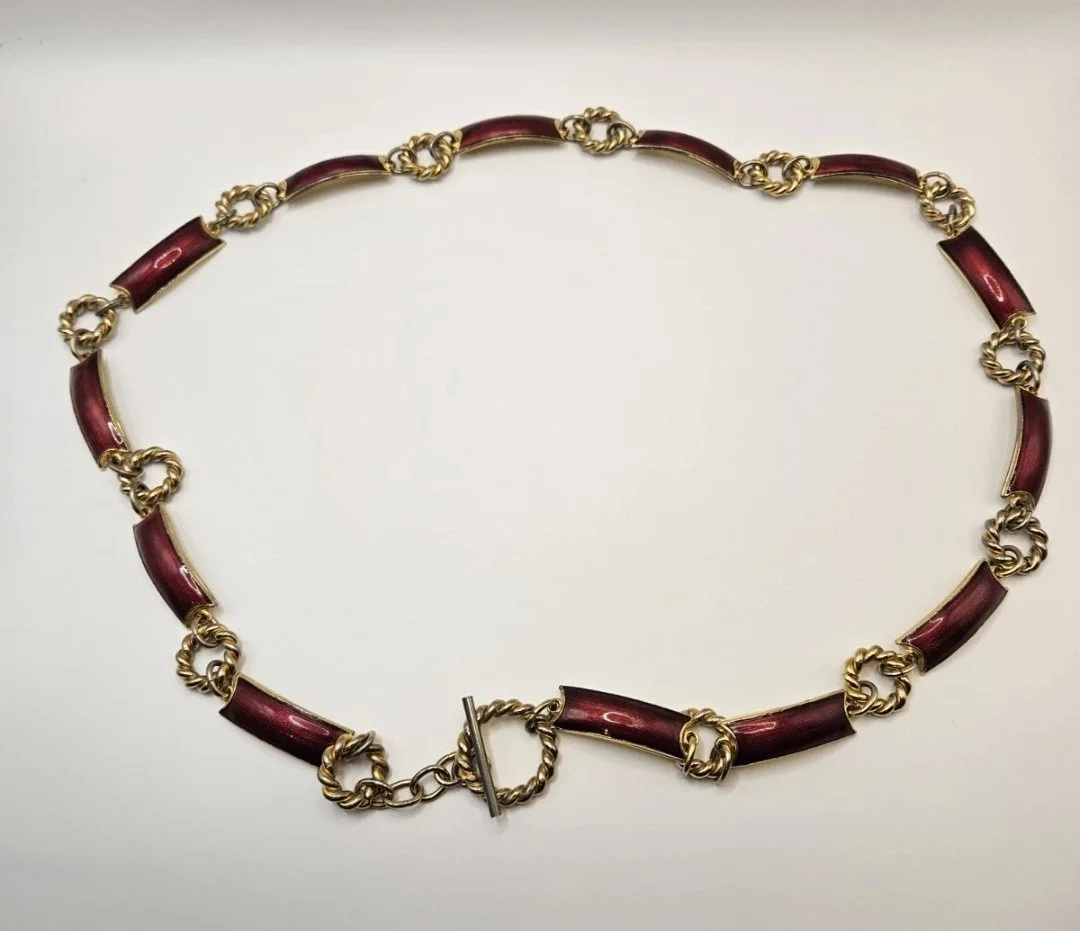 Shop Categories: All Gold Silver Costume Necklaces Rings Bracelets All | Gold | Silver | Costume | Necklaces | Rings | Bracelets | 925 Silver Malachite Flower Ring Size 8 $50.00 Add To Cart Added! Authentic Oragami Owl Rolo Chain With Charms And Lg Retired Crystal Charm $40.00 Add To Cart Added! Beautiful Vtg Black And Floral Cloisonne Enamel Bangle Bracelet $30.00 Add To Cart Added! multi gemstone silver signed link bracelet $60.00 Add To Cart Added! vtg lion of judah cufflinks $25.00 Add To Cart Added! vtg logo dunhill square cufflinks $50.00 Add To Cart Added! Rare Vintage 1970s GUCCI Gold Tone And Red Enamel Chain Link Belt Made In Italy $425.00 Add To Cart Added! Vintage Mexican Etruscan Style 925 Silver Charm Bracelet $300.00 Add To Cart Added! true love waits promise ring 925 $20.00 Add To Cart Added! Betsey Johnson The Eyes Have It Encrusted Rhinestones Eye Necklace Rare $200.00 Add To Cart Added! salisbury pewter " january" $18.00 Add To Cart Added! chicos hammered gold tone ball necklace $29.99 Add To Cart Added! Lucky Brand Statement Necklace $25.00 Add To Cart Added! Timeless Natasha Bib Statement Necklace $20.00 Add To Cart Added! Vtg Betsey Johnson Clear Stone Cuff Bracelet $25.00 Add To Cart Added! Vtg Copper Tribal Style Bracelet $20.00 Add To Cart Added! Vintage Ornate Made in India 2" Brass Cuff Bracelet Boho Hippie $15.00 Add To Cart Added! Asian Style Necklace dyed bamboo Corralwithscrimshaw style pendant $25.00 Add To Cart Added! vtg hair clip $15.00 Add To Cart Added! Art Nuevo beautiful calla lilly sterling silver bracelt $125.00 Add To Cart Added! Vtg Chicos Statement Necklace $20.00 Add To Cart Added! Vtg Cookie Lee Multi Strand Beaded Statement Necklace $20.00 Add To Cart Added! R J GRAZIANO Necklace 5 Strands multistrand Faux Pearls Bead Jewelry Statement $50.00 Add To Cart Added! vtg signed hall mcfall mixed metal modernist pendant $75.00 Add To Cart Added! vtg hall mcfall signed modernist mixed metal earrings $60.00 Add To Cart Added! Double curb style 925 italy chain bracelet $40.00 Add To Cart Added! Rare 50 year old double unicorn cuff pewter bracelet $100.00 Add To Cart Added! italy 925 herringbone necklace $50.00 Add To Cart Added! 925 italy figaro 3 to 1 chain $21.99 Add To Cart Added! limited edition 11:11 (ELeven ELeven) make a wish watch $150.00 Add To Cart Added! vtg hall mcfall ss modernist mixed metal hook bracelet $75.00 Add To Cart Added! vtg 925 sterling clasp red jasper bracelet $100.00 Add To Cart Added! nice wide silver band with clear stone marked $55.00 Add To Cart Added! Beautiful turquoise israel silver ring $100.00 Add To Cart Added! HIeroglyph bracelet inside and out $30.00 Add To Cart Added! modern geometric silver bl onyx earrings $60.00 Add To Cart Added! pair of wrapped hoops $20.00 Add To Cart Added! silver and enamel flower ring marked siam 925 $40.00 Add To Cart Added! ND 925 scalloped ring $45.00 Add To Cart Added! Beautiful vtg 3" stone/studded hoop earrings $25.00 Add To Cart Added! vtg 20/30's art deco motif hair comb $75.00 Add To Cart Added! Htf 20/30's art deco hair comb 8" x 4" $50.00 Add To Cart Added! vtg art deco era 20/30's hair comb 8" x 4" $50.00 Add To Cart Added! unmarked sterling silver charoite cabochon bracelet $125.00 Add To Cart Added! taxco ss spider pendant $40.00 Add To Cart Added! vtg ss dragon " fire forked tongue griffin" pendant $40.00 Add To Cart Added! 925 square black onyx and mother of pearl earrings. $45.00 Add To Cart Added! vtg copper tragedy comedy face mask cuff bracelet/pendant $80.00 Add To Cart Added! tiger eye 925 thailand earrings $40.00 Add To Cart Added! alan k designo silver and enamel lg ring $150.00 Add To Cart Added! vtg betsey johnson statement heart necklace $70.00 Add To Cart Added! Dragon bracelet 925 $125.00 Add To Cart Added! Vintage Chicos Hammered Silver tone Statement Necklace $25.00 Add To Cart Added! Antique Marsh Sterling Silver Belt Clasp Bange Bracelet $190.00 Add To Cart Added!