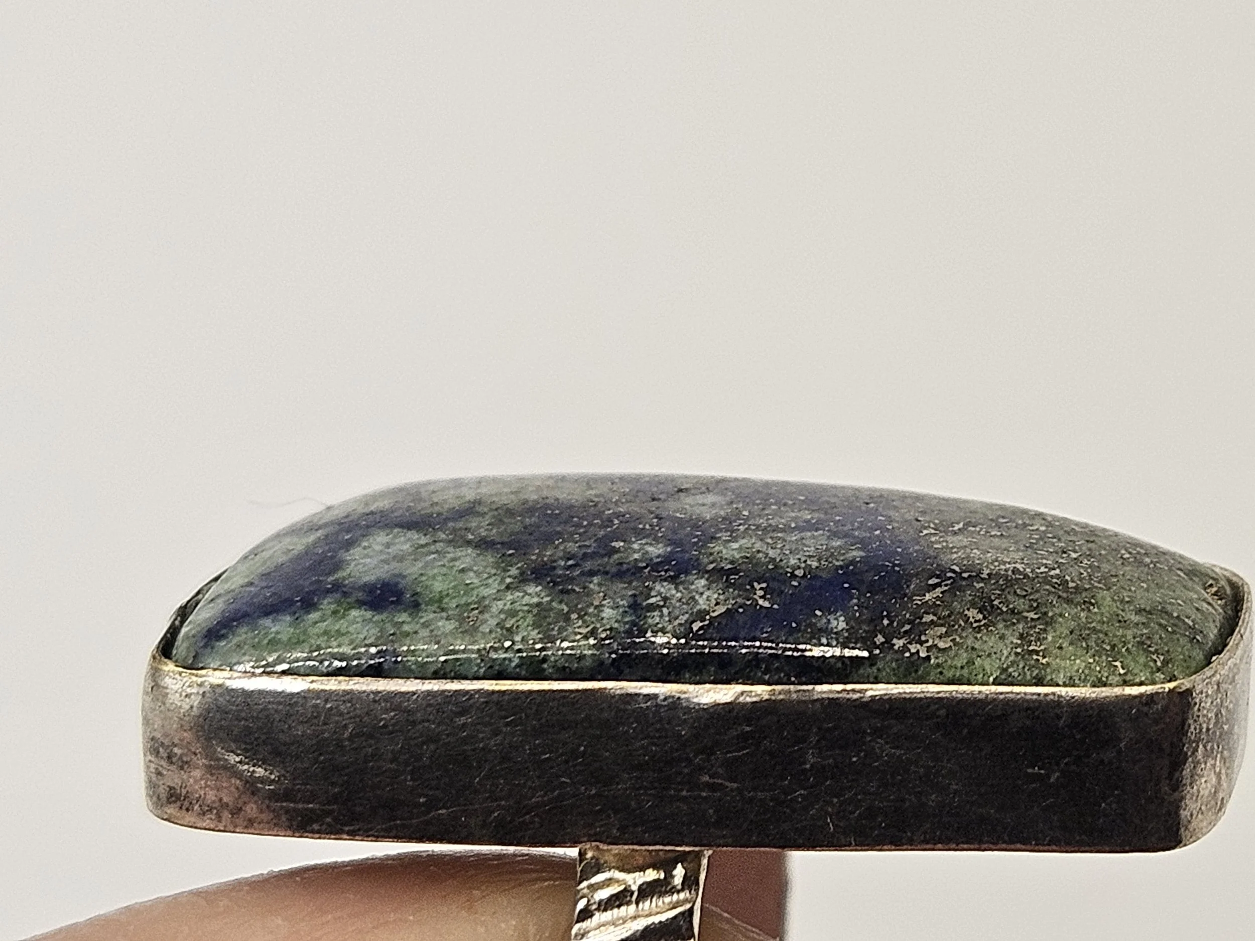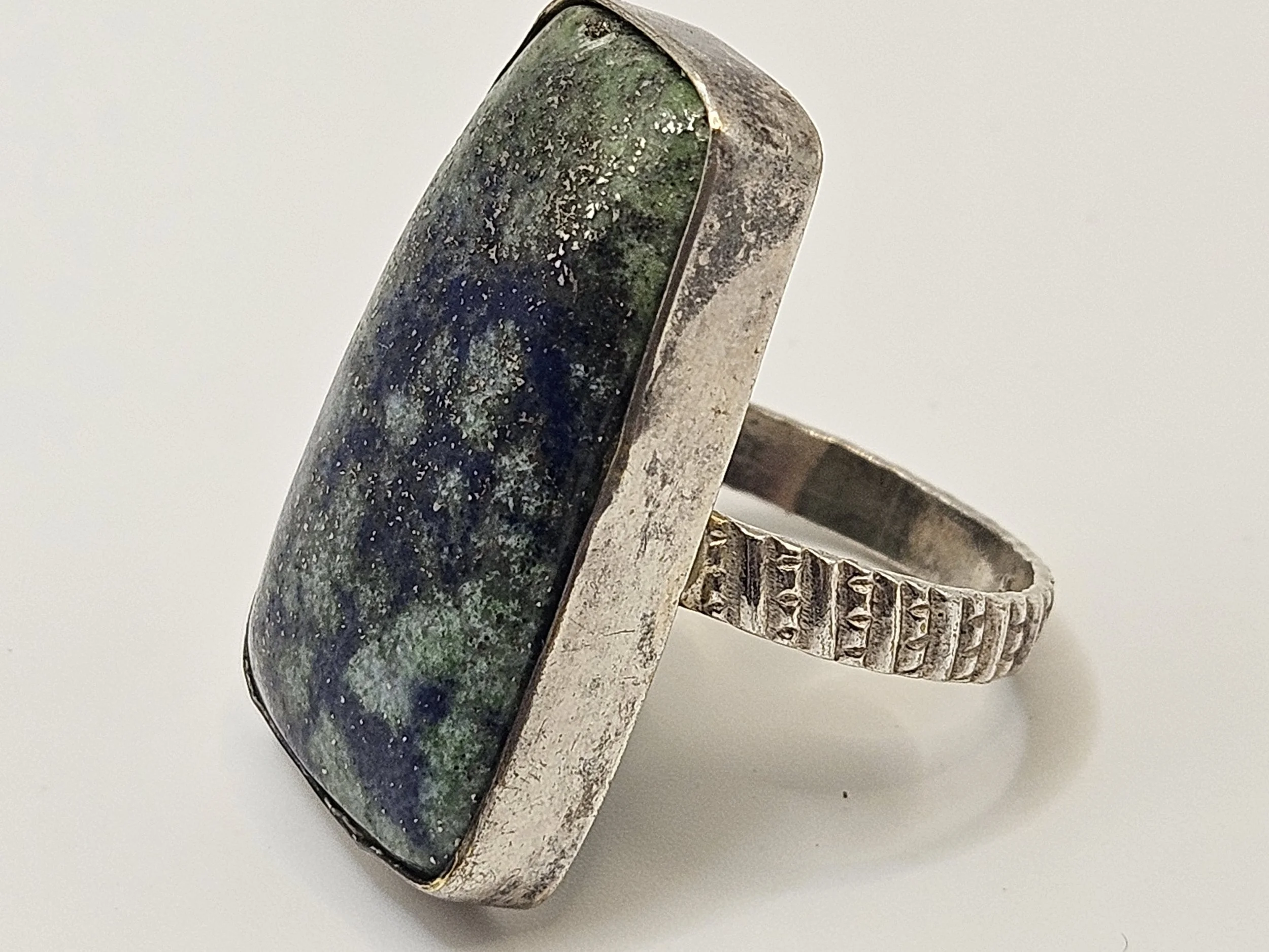 Image 1 of 7 Image 2 of 7 Image 3 of 7 Image 4 of 7 Image 5 of 7 Image 6 of 7 Image 7 of 7 Beautiful 925 Statement Ring LG Stone Lapis Lazauli /malachite Or Chrysocolla $50.00 This is a nice large statement ring, im not sure of gemstone type, it is marked silver. Refer to images. Add To Cart Added! This is a nice large statement ring, im not sure of gemstone type, it is marked silver. Refer to images.